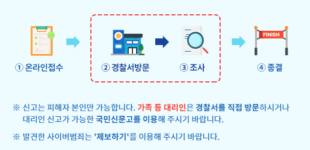 범인 검거가 목적인 경우 KISA 단독 신고로는 불가하므로 꼭 사이버 범죄 신고 시스템을 통해 경찰청 사이버 수사국에 함께 신고해 주세요.